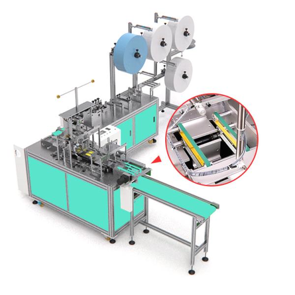 Automatic face mask blank Making Machine, also known as Medical Nonwoven Face Mask Making Machine, which make mask body welding the all around of mask and folding the mask body until forming into the piece of mask . Every minute can output 200 piece of complete face mask blank, mask specifications: 175 X 95 mm three layers of non-woven medical planar anti dust type face mask. Compared with the single independent type mask making machine, joined the automatic conveyor belt and the connecting port, the unique design in addition to improve the production efficiency, reduce artificial cost, is in order to minimize the artificial participation, and reduce the risks of a mask is pollution in the production process: